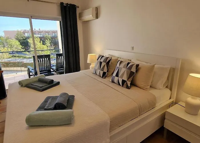 Der nächstgelegene Flughafen, Faro Airport, liegt etwa 85 km entfernt und ist bequem zu erreichen. Die zentrale Lage ermöglicht den Gästen, sowohl den Strand als auch die Stadt bequem zu Fuß oder mit dem Auto zu erkunden, was die Mobilität erheblich erleichtert.